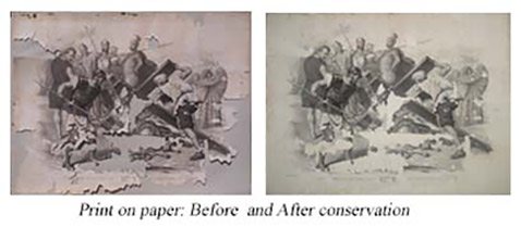 Paper Conservation division conservators examine, document, and treat a wide variety of works on paper. Typical conservation treatments and preventive measures include surface cleaning, removing previous interventions such as pressure-sensitive tape, mending and poor-quality matting materials, reducing discoloration and staining, flattening paper distortions, strengthening of paper supports and housing artworks in acid-free materials. Some facilties are: