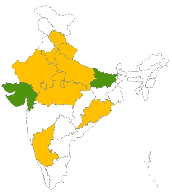 This map represents the surveyed status of states under the WPD. States that have been surveyed by the WPD team are shown in yellow, while green represents states that are currently being surveyed.